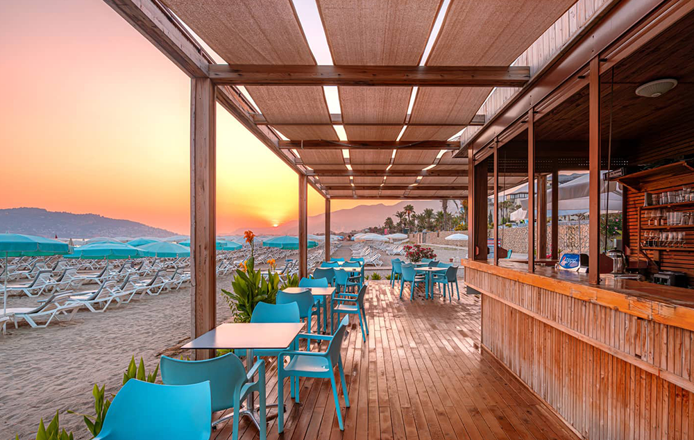 Plaža: Hotelska plaža (deo na Kleopatrinoj plaži )je udaljena 500m od hotela. Gostima je na raspolaganju shuttle bus koji vozi do plaže. Ležaljke i suncobrani koriste bez doplate. Peškiri za plažu su besplatni, svaka zamena se dodatno plaća. Bar na plaži se dodatno plaća.