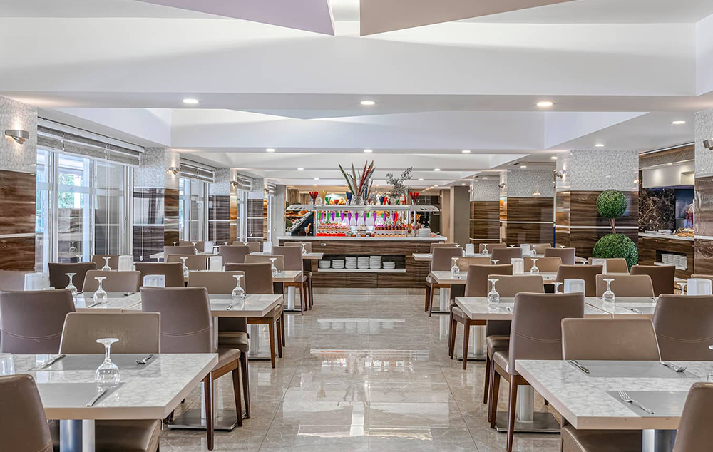 Hotelski sadržaj: Hotel poseduje glavni restoran, 2 a la carte restorana (turski i riblji-korišćenje jednog besplatno u toku boravka uz obaveznu rezervaciju), 2 bara, spoljašnji i unutrašnji bazen za odrasle i decu, večernju animaciju, dečiji klub 8za decu od 4-12 godina), dečija igraonica, mini disko, tursko kupatilo, sauna, masaže, fitness, aerobic, stoni tenis, bilijar, boćanje, pikado, wi fi.