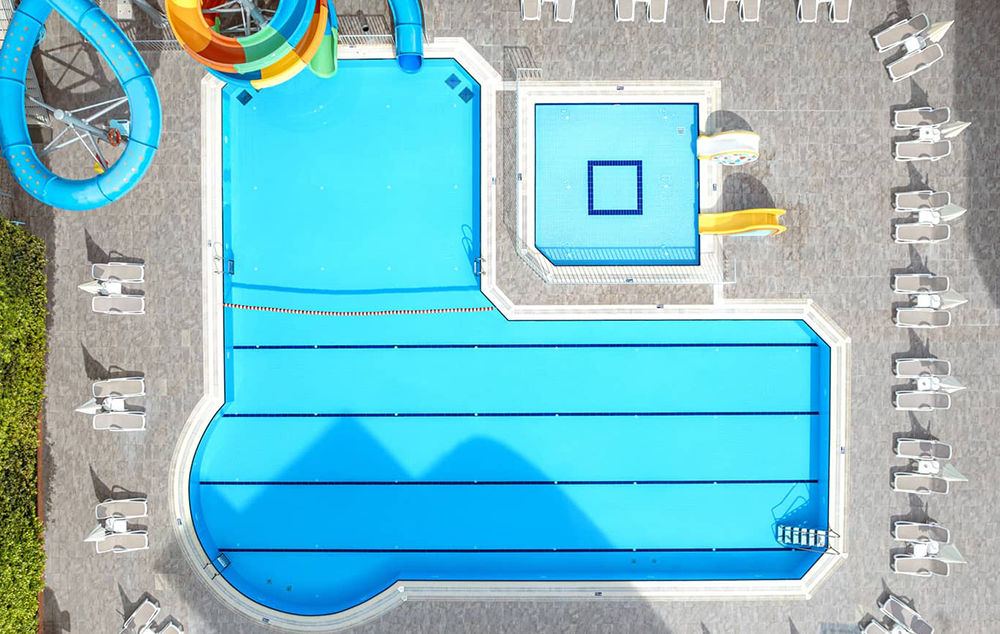 Hotelski sadržaj: Recepcija, glavni restoran, bar pored bazena, bazen za odrasle sa toboganom i odvojenim delom za decu, spa (tursko kupatilo, sauna i masaže-sve uz doplatu).