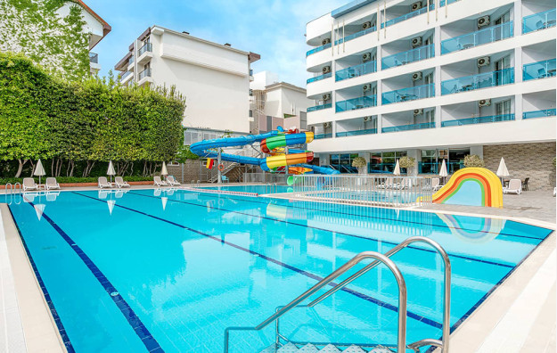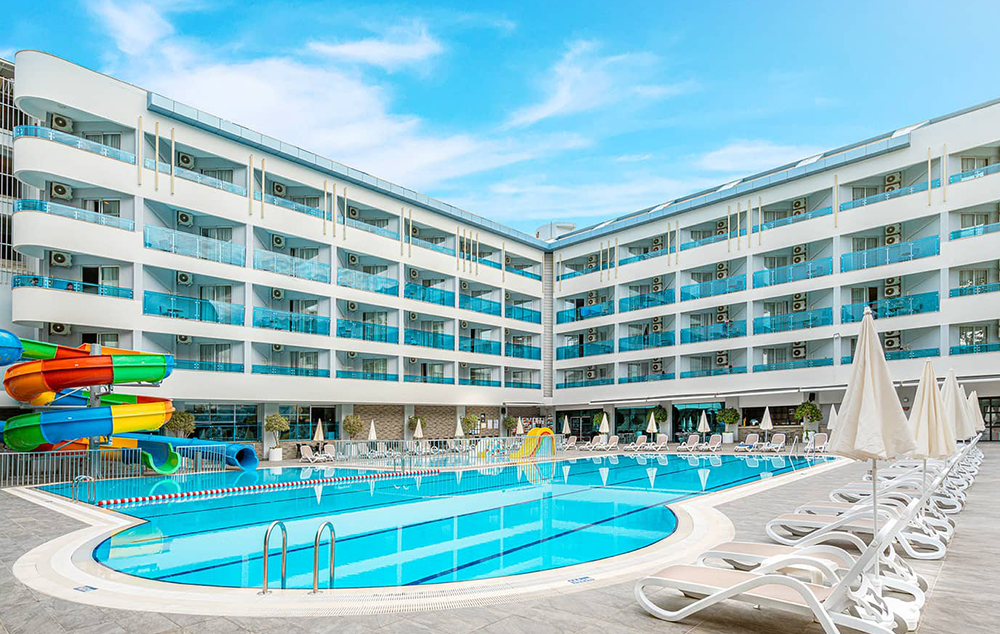 Položaj: Hotel je udaljen 120km od Antalijskog aerodroma i 100m od centra Alanje. Poslednji put renoviran 2019. godine. Preko puta hotela se nalazi aqua park Alanja.