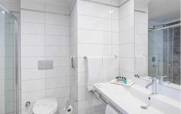 Sve sobe imaju: Kupatilo sa tušem/wc, klimu, fen, SAT/TV, telefon, mini bar (voda), sef (uz doplatu 2 eur po danu), set za kafu i čaj, balkon, wi fi.