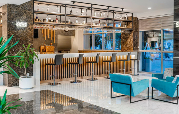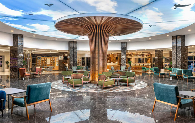 Hotelski sadržaj: Recepcija, glavni restoran, a la carte restoran, lobby bar, bar pored bazena, bar na plaži, bazen sa toboganima i odvojenim delom za decu, poslastičarnicu, mini klub za decu 4-12 god., mini disko, animaciju za decu i odrasle, noćnu animaciju, spa centar (teretana i sauna besplatno, ostalo uz doplatu), wi fi u lobiju je besplatan.