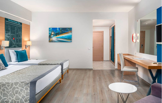 Family connection sobe (25-30m2). Sastoje se od dve spavaće sobe odvojene vratima koje sadrže francuske ležajeve ili odvojene krevete. Dodatni ležaj je sofa ili krevet na rasklapanje. Maksimalno može da boravi pet odraslih osoba.