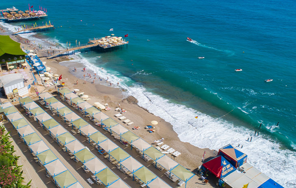 Plaža: Hotelska plaža (deo na Kleopatrinoj plaži )je udaljena 500m od hotela. Gostima je na raspolaganju shuttle bus koji vozi do plaže. Ležaljke i suncobrani koriste bez doplate. Peškiri za plažu su besplatni, svaka zamena se dodatno plaća. Bar na plaži se dodatno plaća.