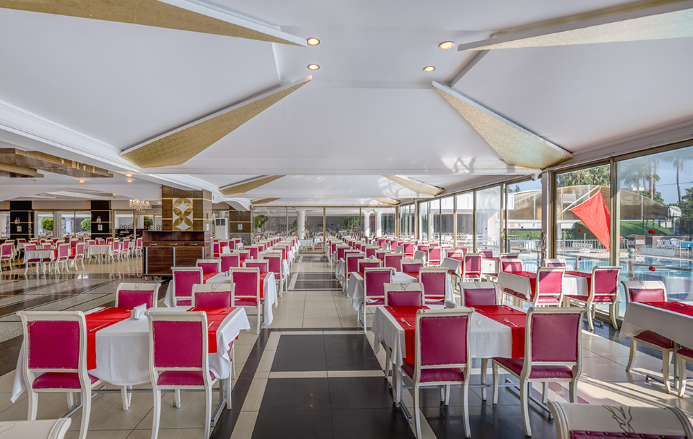 Hotelski sadržaj: Recepcija, glavni restoran, 3 a’la carte restorana (turski, italijanski i riblji - usluge jednog restorana jednom u toku boravka besplatno uz rezervaciju), 4 bara, 2 spoljašnja bazena, 1 unutrašnji bazen, 3 vodena tobogana, noćni klub, teniski teren, odbojka na pesku, fudbal na pesku, stoni tenis, gimnastika, bilijar, amfiteatar, tursko kupatilo, sauna, fitnes centar, pikado, aerobik, animacija, 2 dečija bazena, dečiji klub (4-12 godina) dečije igralište, wi fi.