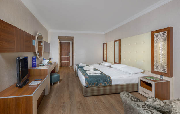 Hotelski sadržaj: Recepcija, 2 glavna restorana, 2 a la carte restorana, dijetalni meni, 13 barova, 2 unutrašnja i 5 spoljašnjih bazena, 5 dečijih bazena, 6 đakuzija, akva park sa 19 tobogana (10 dečijih), bioskopska sala, dnevne i večernje animacije, mini klub (za decu od 4-12 godina), teenage klub (za decu od 13-17 godina), mini disko, igraonica, aerobic u vodi, bocanje, pikado, stoni tenis, odbojka na pesku, teniski teren, košarka, tursko veče, hamam, sauna, parna soba, teretana, bilijar (uz doplatu), wi fi (u lobiju).
