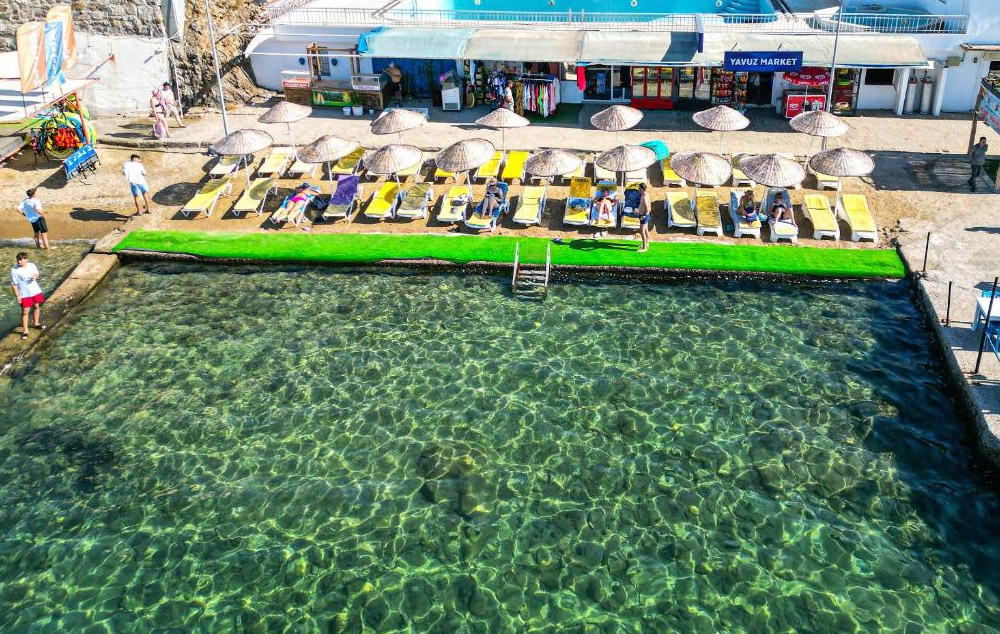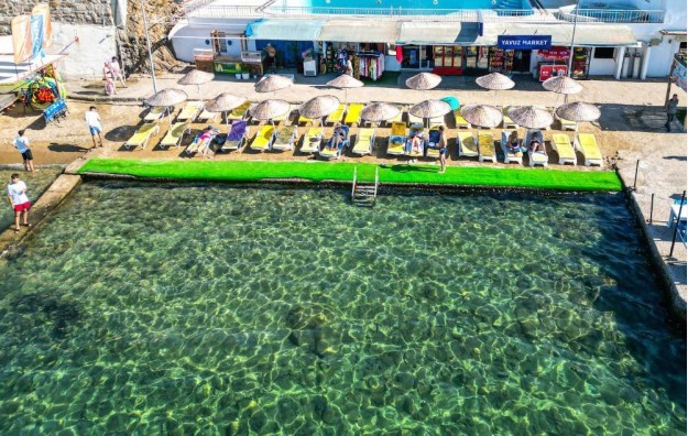 Plaža: Nalazi se oko 50 m od javne plaže u Gumbetu, gde se ležaljke i suncobrani dodatno doplaćuju.