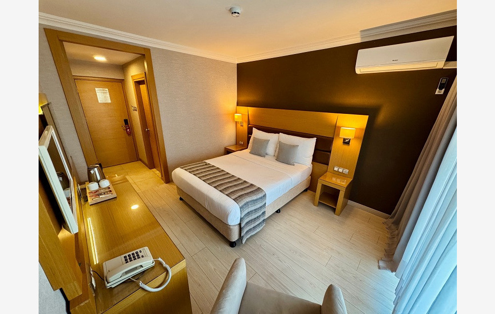 Sobe: Standard sobe sa pogledom na kopno su veličine oko 18m² sa kupatilom (Tuš WC i fen za sušenje kose), SAT TV, minibar (flaša vode po osobi pri dolasku), klima uredjaj, sef (uz doplatu), telefon. wifi. Maksimalno borave 3 odrasle osobe.