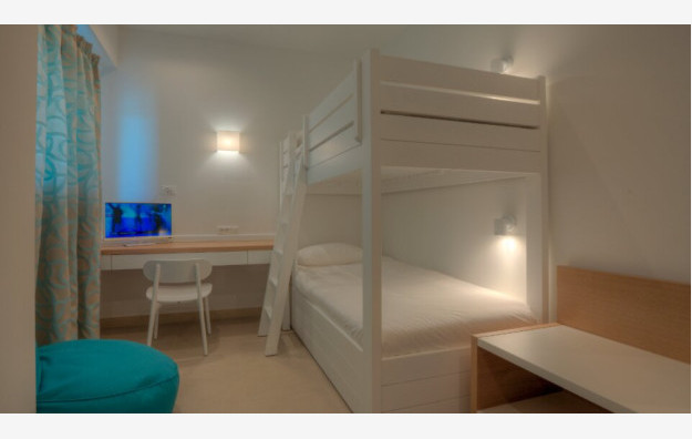 Family Room Bunk Beds Sharing Pool-37 kv.m, moderan sa 2 odvojene spavaće sobe sa kliznim vratima; glavna spavaća soba sa bračnim krevetom i dečija spavaća soba sa dva odvojena kreveta ili krevetima na sprat, 2 satelitska TV i zajedničko kupatilo. Ove sobe imaju direktan pristup zajedničkom bazenu.