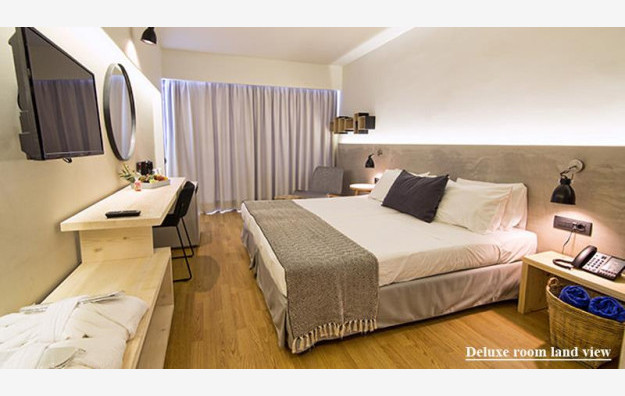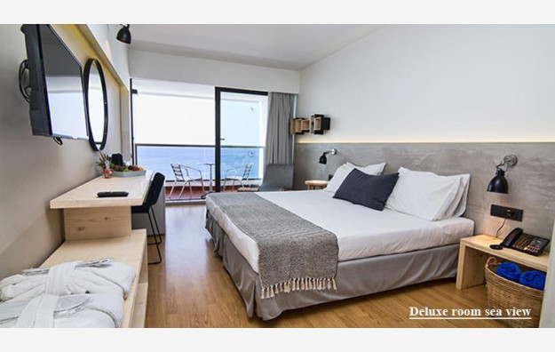 Hotel raspolaže sa 182 smeštajne jedinice. Sve sobe sadrže kupatilo, fen za kosu, Sat TV, klima uređaj (besplatno), mini bar (uz doplatu), sef (uz doplatu), Wi-Fi internet (besplatno), balkon ili terasu. U zakupu agenicije Big Blue su sobe Deluxe Land view i Deluxe Sea view. Sve deluxe sobe su po svojoj osnovnoj strukturi dvokrevetne, dok ostali ležajevi mogu biti pomoćni, sobe su površine od 18-22m² i namenjene za smeštaj 2-3 osobe. Sadrže dva standard ležaja koji mogu biti spojeni ili odvojeni i pomoćni ležaj za potrebe boravka treće odrasle osobe.