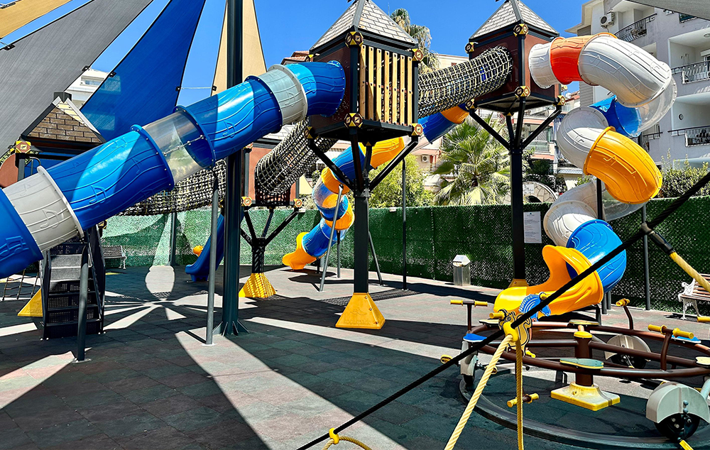 Hotelski sadržaj: Recepcija, 2 glavna restorana, 2 a la carte restorana, dijetalni meni, 13 barova, 2 unutrašnja i 5 spoljašnjih bazena, 5 dečijih bazena, 6 đakuzija, akva park sa 19 tobogana (10 dečijih), bioskopska sala, dnevne i večernje animacije, mini klub (za decu od 4-12 godina), teenage klub (za decu od 13-17 godina), mini disko, igraonica, aerobic u vodi, bocanje, pikado, stoni tenis, odbojka na pesku, teniski teren, košarka, tursko veče, hamam, sauna, parna soba, teretana, bilijar (uz doplatu), wi fi (u lobiju).