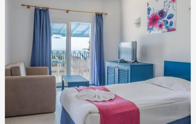 Sobe: standard sobe se nalaze u glavnoj zgradi, imaju 45m² i poseduju kupatilo (WC i fen za sušenje kose), mini-bar (besplatno voda po dolasku i dopunjava se vodom na dnevnom nivou), telefon (uz doplatu), klima, SAT TV, balkon ili terasa, wi fi. Maksimalno borave 3 odrasle osobe. Club standard sobe imaju površinu od 20-24m2 i isto su opremljene kao standard sobe i poseduju francuski balkon. Maksimalno borave 2 odrasle osobe. Family sobe imaju površinu od 47-60m2 i mogu da se nalaze u glavnoj zgradi, anex zgradi ili u club delu (u club delu su sobe manje površine). Family sobe imaju dnevni boravak i odvojenu spavaću sobu. Isto su opremljene kao standard sobe. Maksimalno boravi 6 odraslih osoba.