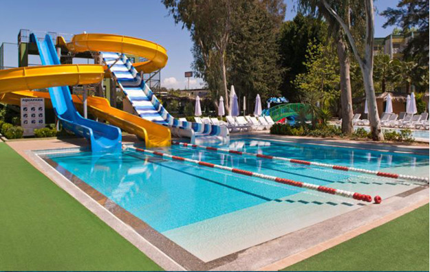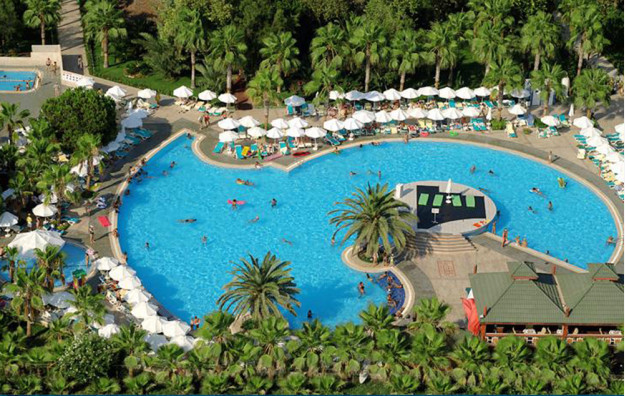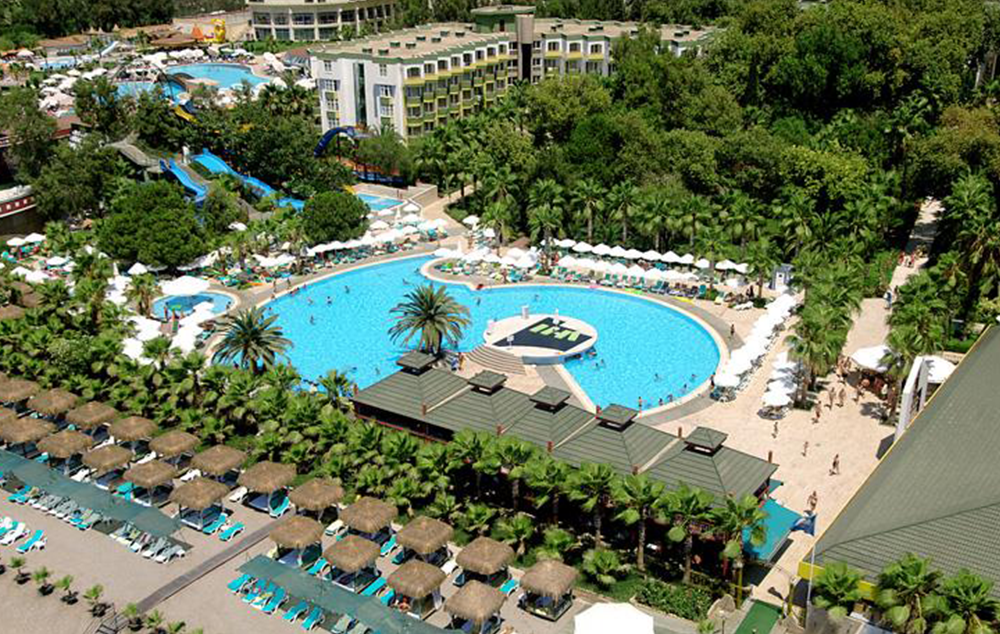 Hotelski sadržaj: Recepcija, 2 glavna restorana, 2 a la carte restorana, dijetalni meni, 13 barova, 2 unutrašnja i 5 spoljašnjih bazena, 5 dečijih bazena, 6 đakuzija, akva park sa 19 tobogana (10 dečijih), bioskopska sala, dnevne i večernje animacije, mini klub (za decu od 4-12 godina), teenage klub (za decu od 13-17 godina), mini disko, igraonica, aerobic u vodi, bocanje, pikado, stoni tenis, odbojka na pesku, teniski teren, košarka, tursko veče, hamam, sauna, parna soba, teretana, bilijar (uz doplatu), wi fi (u lobiju).