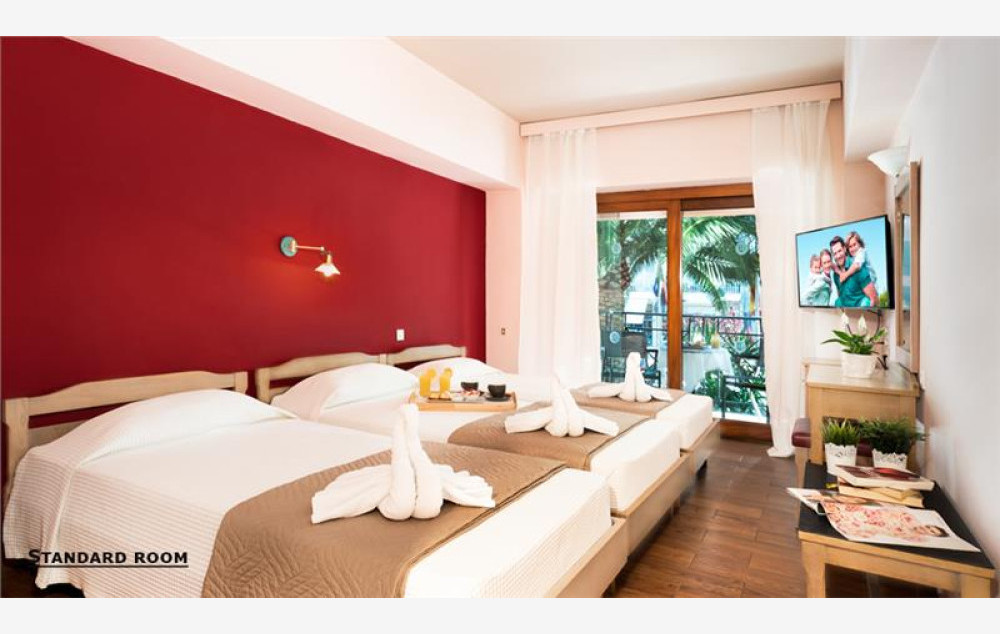 Našim putnicima su na raspolaganju standardne sobe koje mogu da prime dve ili tri osobe. Sve standardne sobe u hotelu su po svojoj osnovnoj strukturi dvokrevetne, dok ostali ležajevi mogu biti pomoćni. Sobe sadrže kupatilo sa tušem, fen, SatTV, wi-fi internet (uključen u cenu), telefon, centralni klima uređaj uključen u cenu, mini frižider, balkon ili terasu. Bebi krevetac je gostima na raspolaganju (obavezna najava prilikom rezervacije). Sobe sadrže dva odvojena kreveta ili francuski ležaj, dok je za potrebe treće osobe na raspolaganju pomoćni ležaj.