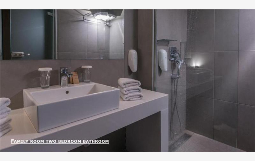 Porodične sobe (sastoje se iz jednog dela) 26m2 mogu primiti dvoje odraslih i dvoje dece ili tri odrasle osobe i jedno dete, a porodične sa dve spavaće sobe 32m2 mogu da prime maksimum dve odrasle osobe i dvoje dece ili tri odrasle i jedno dete kao i 4 odrasle osobe. Sadrže francuski ležaj ili dva standardna ležaja, kao i dodatni ležaj za potrebe treće ili četvrte osobe, a koji može biti pomoćni. U svom sastavu sve sobe sadrže: kupatilo (tuš ili kada), klima uređaj, SatTv, radio, mini frižider, fen za kosu, sef (uz doplatu), telefon, balkon ili terasu. Krevetac za bebe je besplatno, na upit.