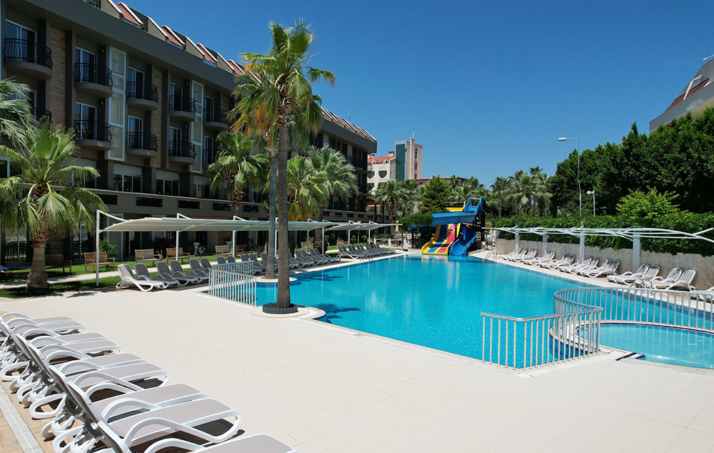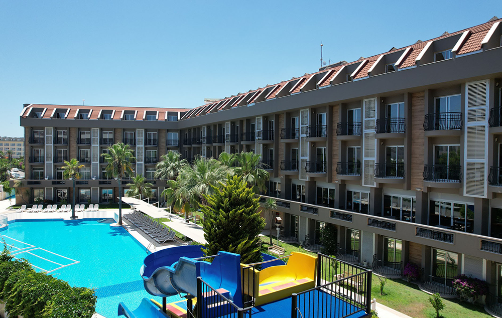 Položaj: Hotel je udaljen 120km od Antalijskog aerodroma i 100m od centra Alanje. Poslednji put renoviran 2019. godine. Preko puta hotela se nalazi aqua park Alanja.