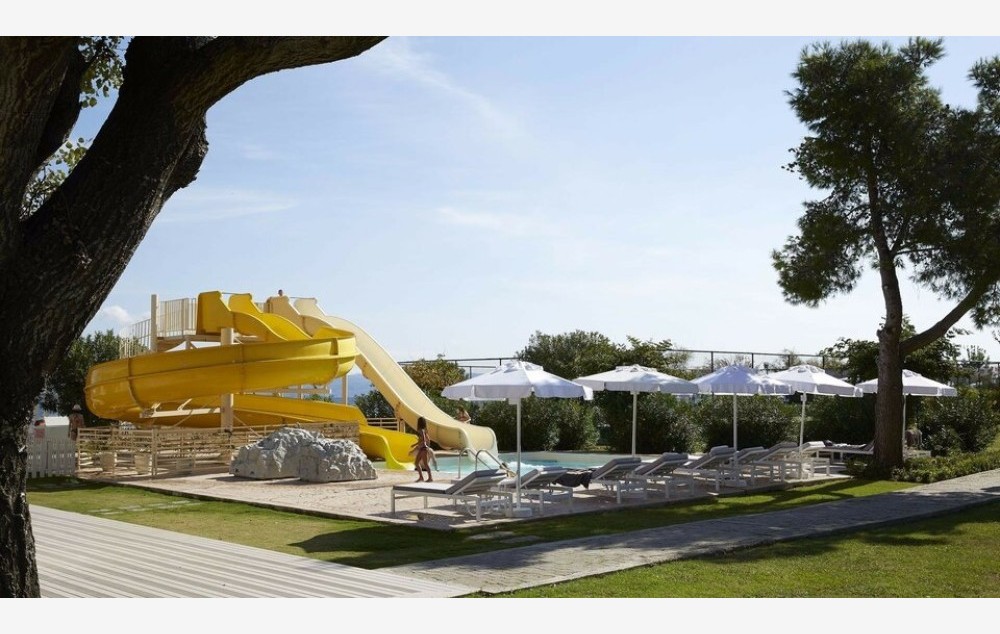 SADRŽAJ:Recepcija, restoran mediteranske i internacionalne kuhinje sa show cooking delom, italijanski a la cart restoran, restoran grčke kuhinje, snek bar, lobi bar, bar pored bazena, dva bazena, dečiji bazen, mini tobogani za decu, igralište za decu, klub za decu 4-12 godina, odbojka na pesku, fitnes, aerobik,