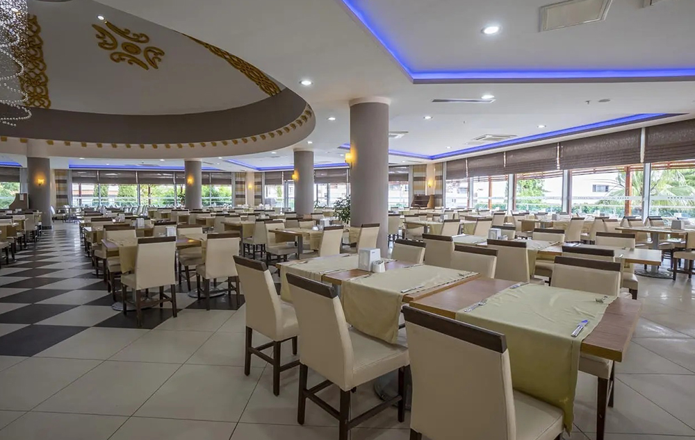 Hotelski sadržaj: Hotel poseduje glavni restoran, 2 a la carte restorana (turski i riblji-korišćenje jednog besplatno u toku boravka uz obaveznu rezervaciju), 2 bara, spoljašnji i unutrašnji bazen za odrasle i decu, večernju animaciju, dečiji klub 8za decu od 4-12 godina), dečija igraonica, mini disko, tursko kupatilo, sauna, masaže, fitness, aerobic, stoni tenis, bilijar, boćanje, pikado, wi fi.