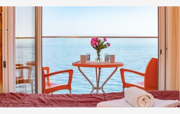 Suite - Apartman otvorenog tipa s balkonom i pogledom na more nudi prostranih 55 m2. Sadrži udoban bračni krevet, pružajući luksuzan i prostran smeštaj.