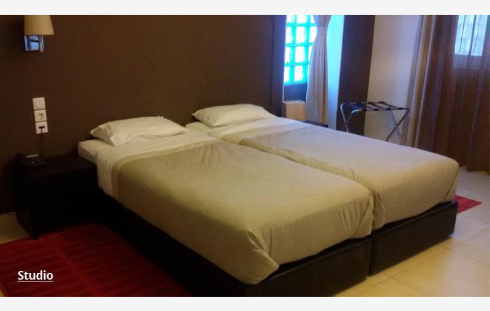Hotel se sastoji od 18 studija koji primaju maksimalno 2 ili 3 osobe i opremljeni su tako da zadovolje sve potrebe modernog turiste. Locirani su na prvom ili drugom spratu. Studiji se dele na dva tipa: studio (koji ima pogled na grad) i studio sa pogledom na atrium hotela (studiji pogled atrium imaju pogled na unutrašnji deo hotelske zgrade). Studio prima maksimum dve osobe sastoji se od francuskog ležaja ili dva standardna ležaja, dok se u studio atrium view mogu smestiti tri osobe (francuski ili dva standardna ležaja, dok je treći ležaj pomoćni-na razvlačenje i može uticati na komoditet). Svaki studio je dvokrevetan po svojoj osnovnoj strukturi dok treći ležaj može biti pomoćni. Studiji sadrža čajnu kuhinju, frižider, ketler, kuhinjski pribor, SatTV, wi-fi - besplatno, klima uredjaj (besplatno), sef uz doplatu na licu mesta 3 eur dnevno, kupatilo sa hidromasažnom tuš kabinom, fen za kosu, balkon. Servis promene peškira se odvija svakog drugog dana, dok se zamena posteljine vrši svaki treći dan. Bebi krevetac je na upit i besplatan je, obavezna najava prilikom rezervacije.