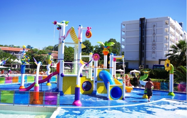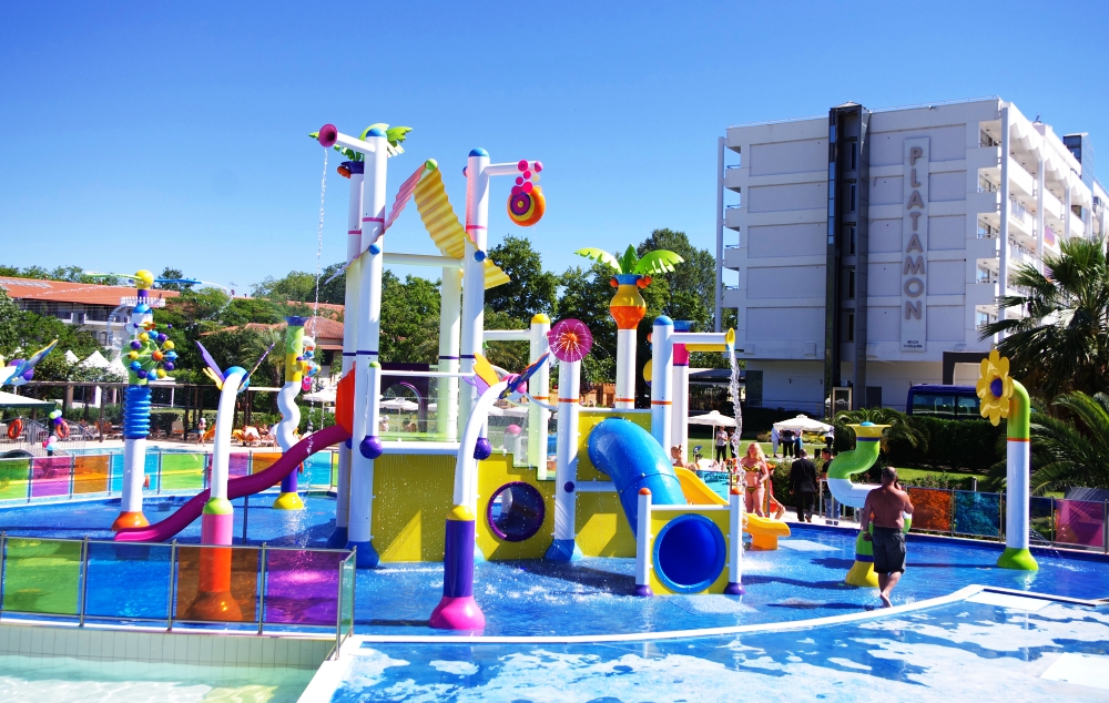 SADRŽAJ: Recepcija, dva bazena, dečiji bazen, zatvoreni bazen, dečije igralište, akva park, mini klub, pozorišne animacije, teniski teren, teren za košarku i odbojku, bilijar, stoni tenis, mini market, restoran i taverna, prodavnica nakita, parking, spa centar u kome se nalazi sauna, hidro masaža, teretana, spoljni bioskop, konferencijska sala, internet kutak...