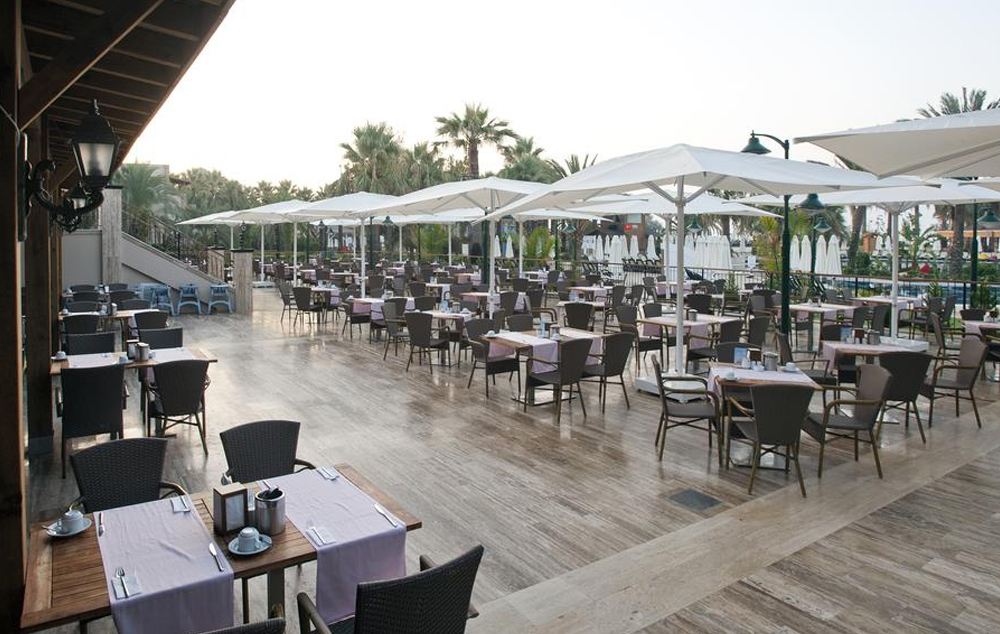 Hotelski sadržaj: recepcija, liftova, glavni restoran sa odvojenim delom za decu, 4 a la carte restorana (Riblji restoran uz doplatu, ostali restorani besplatno , uz prethodnu rezervaciju), 3 snack restorana (1 otvoren tokom noć), poslasticarnica, 10 barova (beach bar besplatno), disco club (pića uključena), otvoreni glavni bazen sa odrasle, bazen samo za odrasle 16+, Aqua park, mini klub 4-12 godina, mini disco, mini bioskop, igralište za decu, Teen klub 13-16 god., dnevna i večernja animacija za decu i odrasle, tematske večeri, Spa centar (teretana, hamam, sauna, parno kupatilo-sve besplatno), 5 teniskih terena (oprema i osvetljenje uz doplatu), boćanje, pikado, aerobic, odbojka na plaži, stoni tenis, mini golf. Wi-Fi je dostupan besplatno na celoj teritoriji hotela.