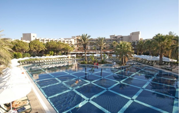 Hotelski sadržaj: Recepcija, 2 glavna restorana, 2 a la carte restorana, dijetalni meni, 13 barova, 2 unutrašnja i 5 spoljašnjih bazena, 5 dečijih bazena, 6 đakuzija, akva park sa 19 tobogana (10 dečijih), bioskopska sala, dnevne i večernje animacije, mini klub (za decu od 4-12 godina), teenage klub (za decu od 13-17 godina), mini disko, igraonica, aerobic u vodi, bocanje, pikado, stoni tenis, odbojka na pesku, teniski teren, košarka, tursko veče, hamam, sauna, parna soba, teretana, bilijar (uz doplatu), wi fi (u lobiju).