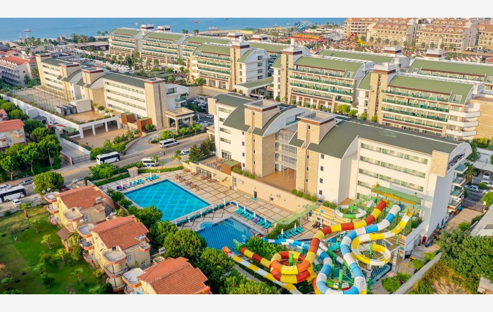 Hotelski sadržaj: Recepcija, 2 glavna restorana, 2 a la carte restorana, dijetalni meni, 13 barova, 2 unutrašnja i 5 spoljašnjih bazena, 5 dečijih bazena, 6 đakuzija, akva park sa 19 tobogana (10 dečijih), bioskopska sala, dnevne i večernje animacije, mini klub (za decu od 4-12 godina), teenage klub (za decu od 13-17 godina), mini disko, igraonica, aerobic u vodi, bocanje, pikado, stoni tenis, odbojka na pesku, teniski teren, košarka, tursko veče, hamam, sauna, parna soba, teretana, bilijar (uz doplatu), wi fi (u lobiju).