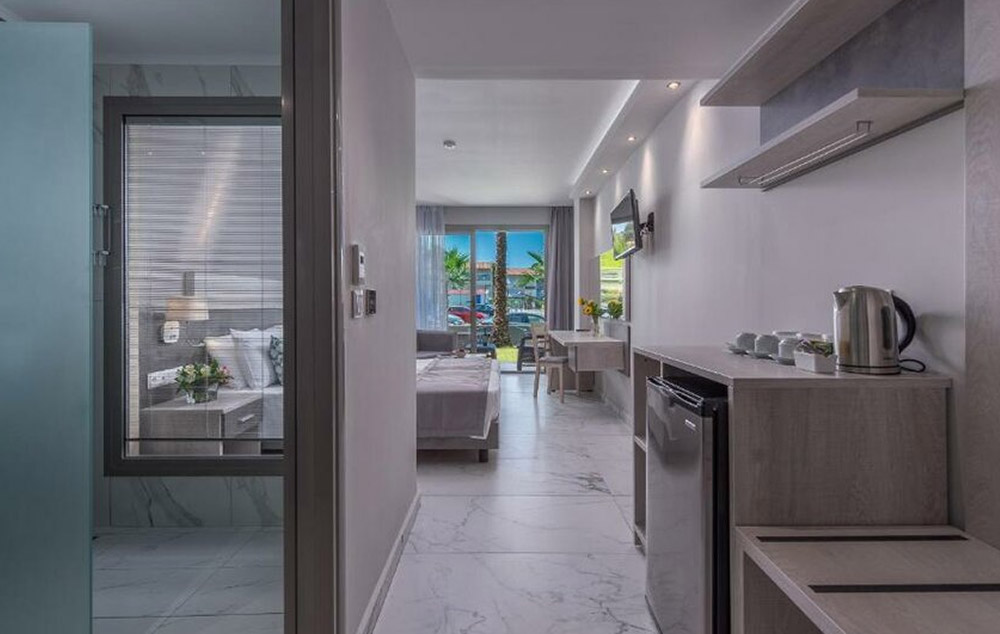 Deluxe studio- Studiji površine 25-30 m², potpuno renovirani posljednjih godina, imaju delimično opremljenu kuhinju s keramičkom pločom za kuvanje, hladnjakom i kuvalom za vodu, veliki TV, bračni ili dva odvojena kreveta i kauče na razvlačenje za 3. i 4. osobu.