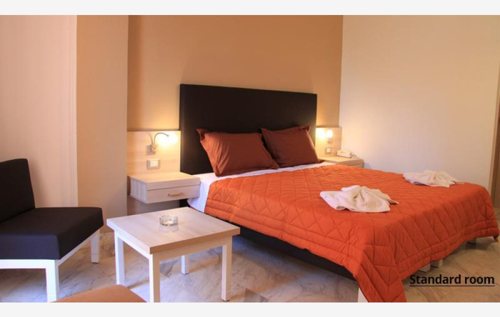 Hotel raspolaže sa 30 soba uređenih u tradicionalnom stilu. Standardne sobe sadrže: klima uređaj (uključen u cenu), Wi-Fi (uključen u cenu), TV prijemnik, kupatilo sa tušem ili kadom, sef (uz doplatu 2 evra dnevno), frižider, balkon ili terasu.
