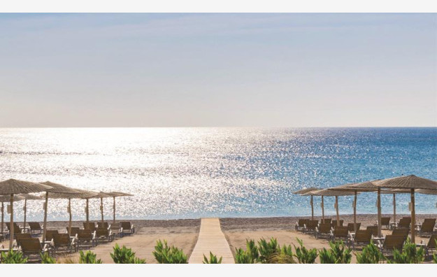 Smešten je na peščano šljunkovitoj plaži dugoj 400 metara, koja je nagrađena plavom zastavicom za čistoću mora i plaže. Ležaljke i suncobrani su besplatni za goste hotela. Postoji mogućnost iznajmljivanja peškira za bazen i plažu-besplatno.