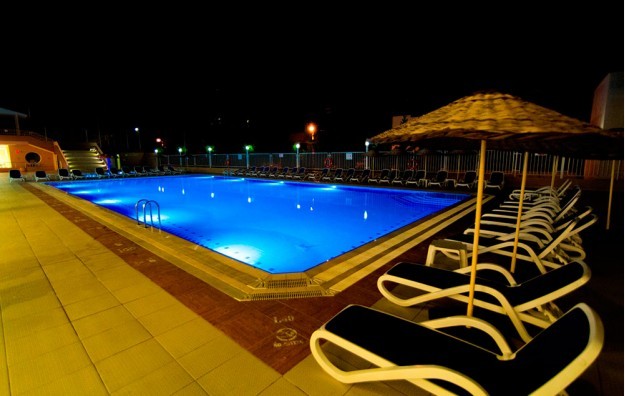 Hotelski sadržaj: 2 restorana, italijanski a la carte restoran, tri bara, otvoreni bazen, unutrašnji bazen, bazen za decu, stoni tenis, fitness centar, tursko kupatilo, sauna, masaža, salon lepote, diskoteka, igraonica, mini klub za decu od 4 do 12 godina, dečije igralište, dnevna i večernja animacija, shoping centar, boćanje, pikado, bilijar, sportovi na vodi, parking, wifi u holu.