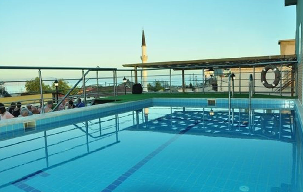 Hotelski sadržaj: Recepcija, restoran sa terasom, bazen na krovu hotela, bar pored bazena, ležaljke i suncobrani pored bazena su besplatni, lift, besplatan wi fi u lobiju.