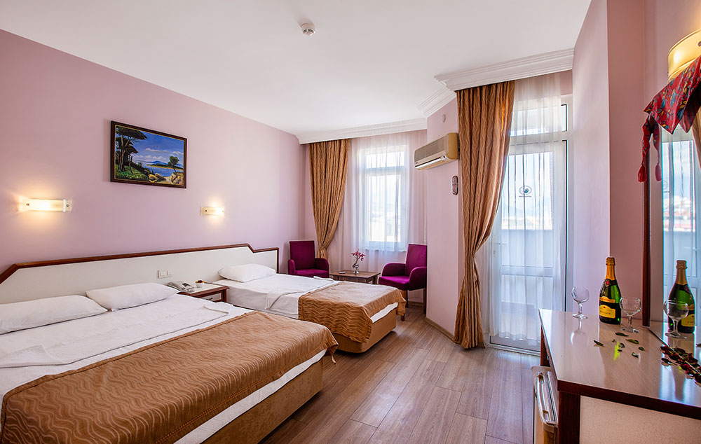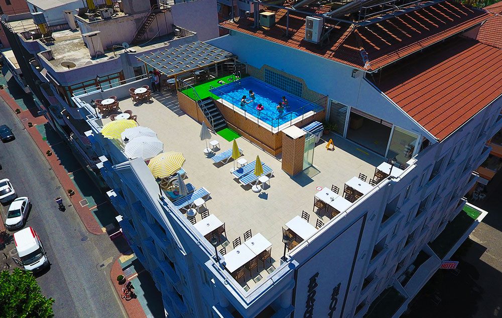 Položaj: Hotel je udaljen 120km od Antalijskog aerodroma i 100m od centra Alanje. Poslednji put renoviran 2019. godine. Preko puta hotela se nalazi aqua park Alanja.