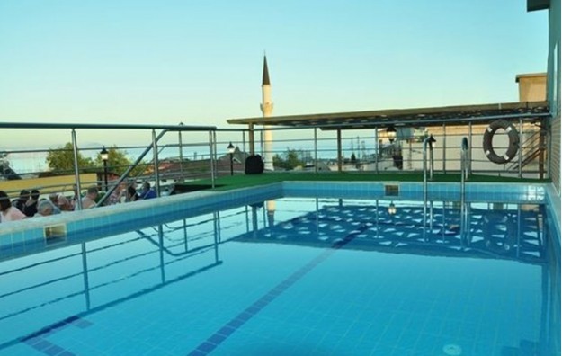 Hotelski sadržaj: Recepcija, glavni restoran, bar pored bazena, bazen za odrasle sa toboganom i odvojenim delom za decu, spa (tursko kupatilo, sauna i masaže-sve uz doplatu).