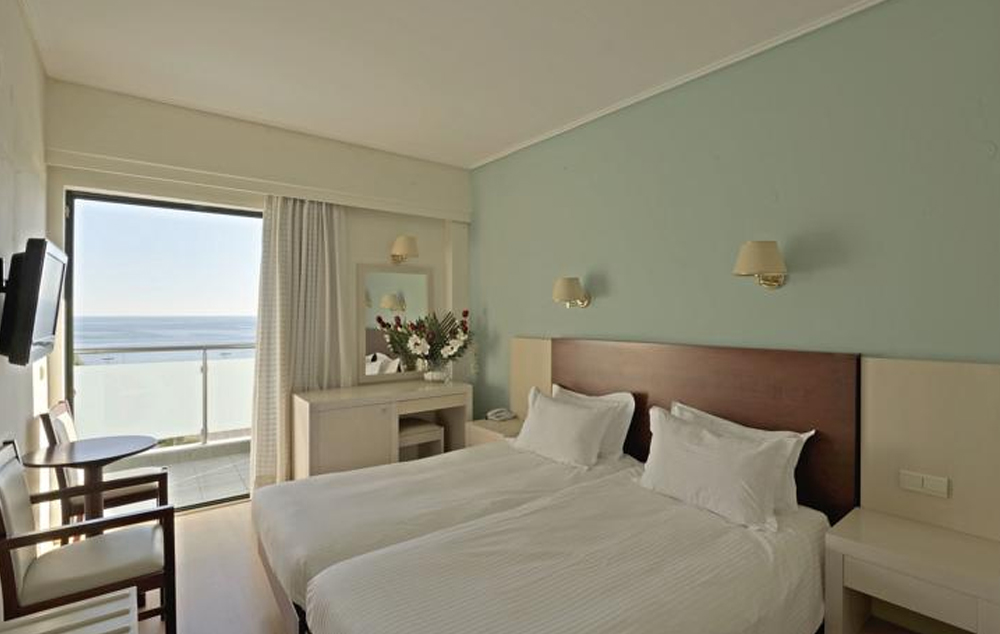 Superior room Sea View - Nedavno renovirana soba od 18 m² s belim nameštajem, modernism kupatilom i prekrasnim pogledom na more, namenjena za 2-3 osobe (bračni ili dva odvojena kreveta s kaučem na razvlačenje)