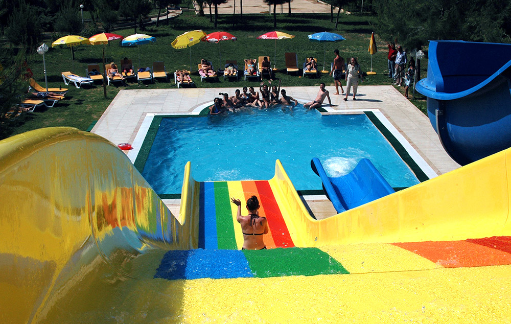 Hotelski sadržaj: recepcija, restoran, 2 bara - loby bar, bar pored bazena, 2 bazena, sa delom za decu, bazen za decu, besplatne ležaljke i suncobrani pored bazena, tobogani, jakuzzi, igralište za decu, tenisko igralište, stoni tenis, bilijar, mini golf, odbojka na plaži, basket, mini klub za decu, diskoteka, hotelska animacija, wi fi, parking.