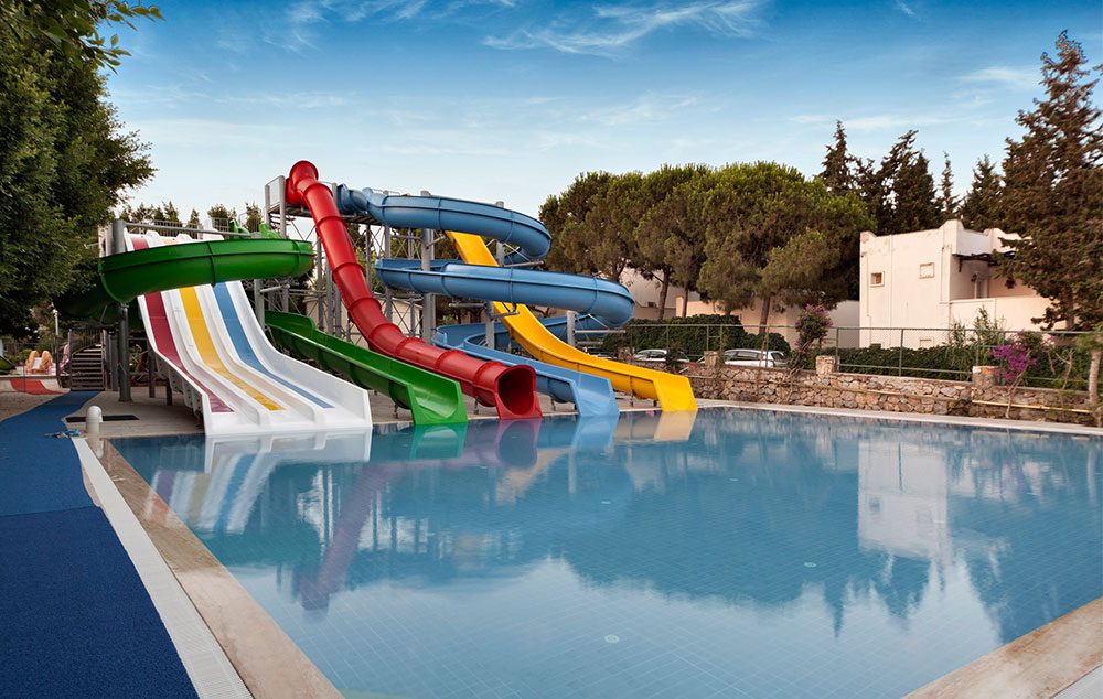 Sadržaj: recepcija, lobi, 2 otvorena bazena (sa delom za decu), 3 bazena za decu sa toboganima, zatvoreni bazen sa delom za decu, glavni restoran, 2 a la carte restorana, 4 bara, spa centar, frizerski salon, stoni tenis, bilijar, pikado, šah, fitnes, club za decu, igralište za decu, disko, mini market, butik, dnevna i večernja animacija, perionica, wifi u holu hotela.