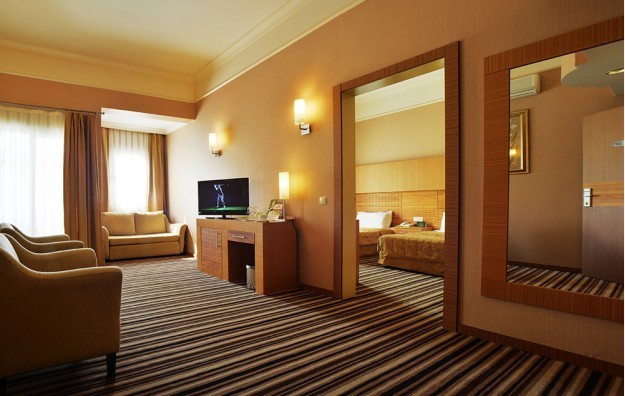 Sobe: Standard sobe veličine oko 35m2 poseduju kupatilo (tuš-wc, fen za sušenje kose), TV, klimu , sef, telefon, mini bar, ketler, balkon, wi fi. Maksimalno borave 3 odrasle osobe i 1 dete od 13 godina. Porodične sobe veličine oko 70m2 sastoje se od dve prostorije odvojene vratima sa zajednickim kupatilom i opremnjene su isto kao i standard sobe. Maksimalno borave 4 odrasle osobe.