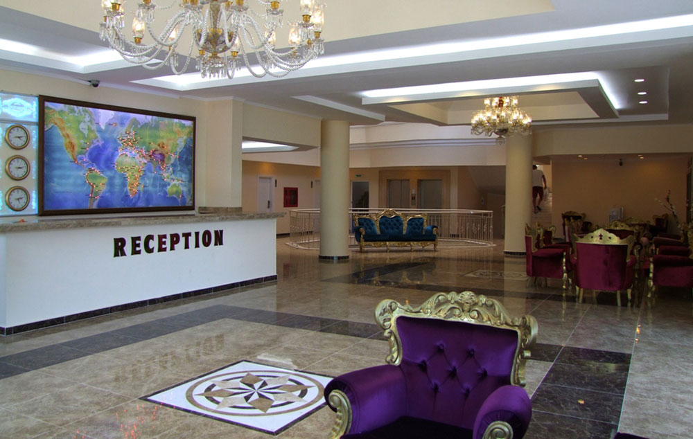 Lokacija: Hotel je udaljen 60 km od aerodroma u Antaliji, a 4 km od grada Kemera, u mestu Kiriš. Hotel zauzima površinu od 17 590 m2.