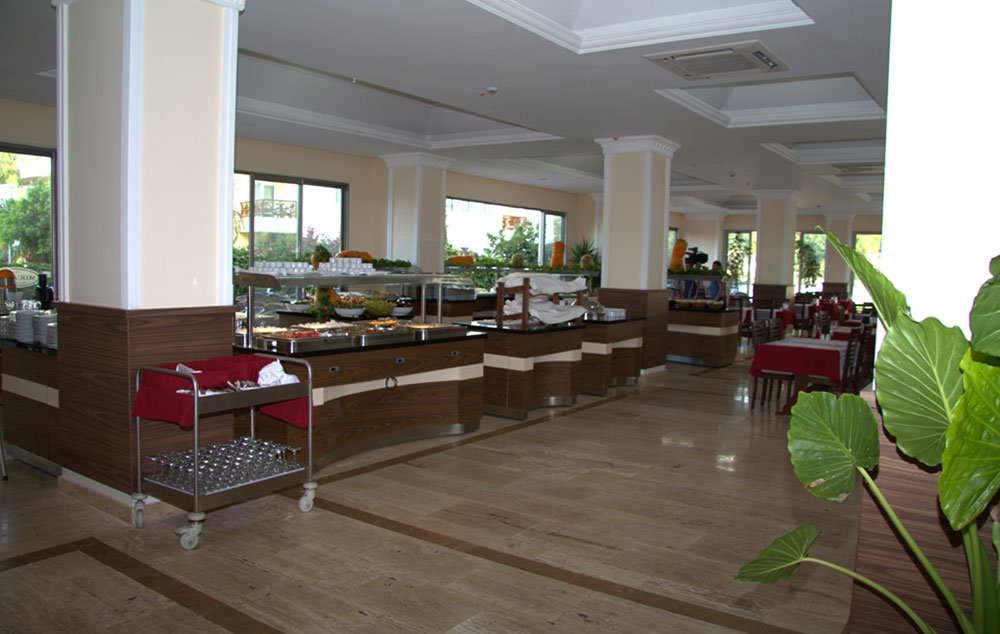 Hotelski sadržaj: Hotel poseduje glavni restoran, 2 a la carte restorana (turski i riblji-korišćenje jednog besplatno u toku boravka uz obaveznu rezervaciju), 2 bara, spoljašnji i unutrašnji bazen za odrasle i decu, večernju animaciju, dečiji klub 8za decu od 4-12 godina), dečija igraonica, mini disko, tursko kupatilo, sauna, masaže, fitness, aerobic, stoni tenis, bilijar, boćanje, pikado, wi fi.