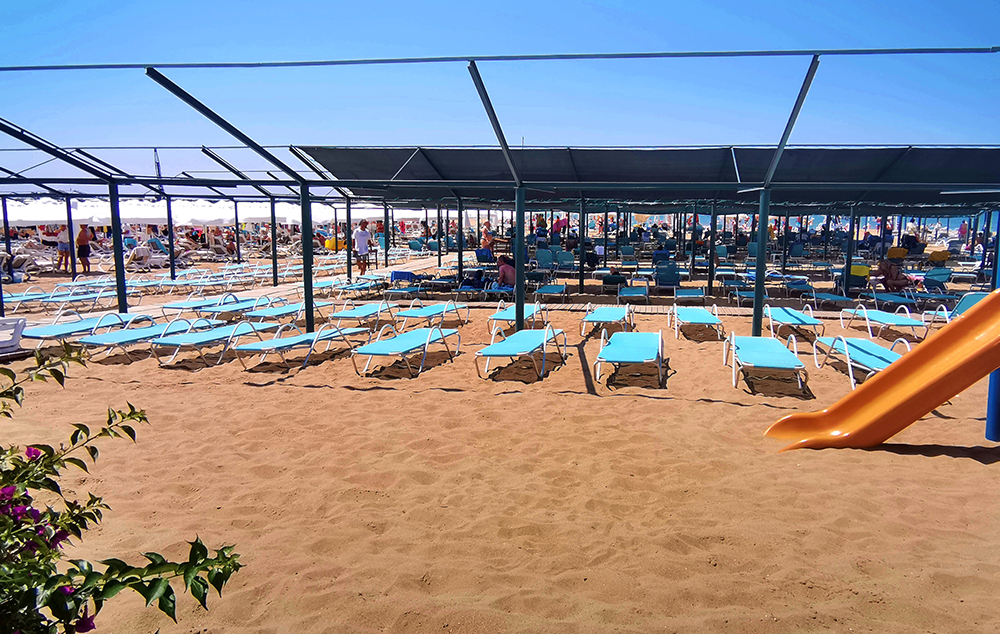 Plaža: Hotel poseduje sopstvenu peščano-šljunkovitu plažu koja se nalazi na 500m udaljenosti od hotela (postoji podzemni tunel). Za goste hotela ležaljke i suncobrani su besplatni, peškiri uz doplatu. Bar na plaži uz doplatu.