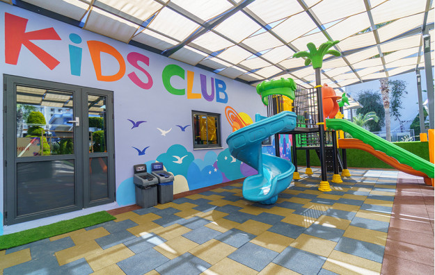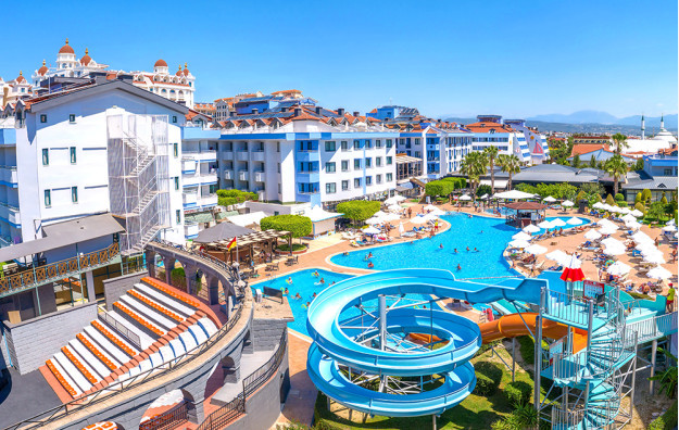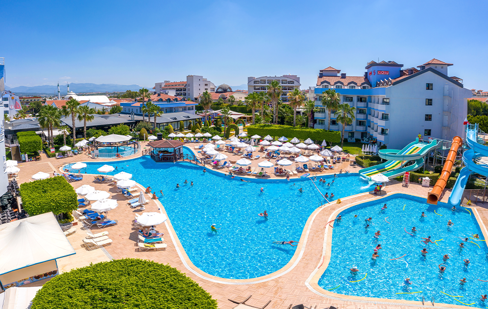 Hotelski sadržaj: Recepcija, 2 glavna restorana, 2 a la carte restorana, dijetalni meni, 13 barova, 2 unutrašnja i 5 spoljašnjih bazena, 5 dečijih bazena, 6 đakuzija, akva park sa 19 tobogana (10 dečijih), bioskopska sala, dnevne i večernje animacije, mini klub (za decu od 4-12 godina), teenage klub (za decu od 13-17 godina), mini disko, igraonica, aerobic u vodi, bocanje, pikado, stoni tenis, odbojka na pesku, teniski teren, košarka, tursko veče, hamam, sauna, parna soba, teretana, bilijar (uz doplatu), wi fi (u lobiju).