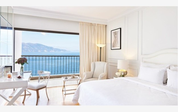 Panoramic Guestroom Sea View-32 m2, idealno raspoređene na višim spratovima glavne zgrade, ove elegantne, preuređene sobe za goste, kombinuju klasičnu veličinu sa pametnim modernim detaljima, sa bračnim krevetom.