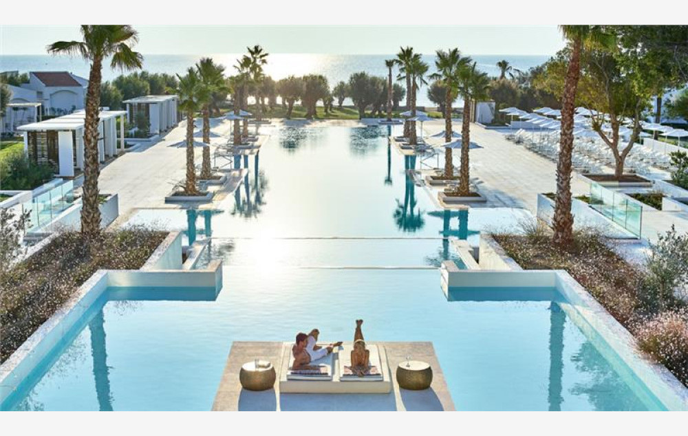 Gostima su na raspolaganju recepcija, glavni restoran, četiri a la kart restorana, poslastičarnica, vinski odeljak, dva bara, bazen dužine 100 metara, bazen sa toboganima i bazen za decu, spa centar, sauna, parno kupatilo, fitnes, besplatan wi-fi internet, golf teren (plaća se), odbojka na plaži, stoni tenis, pikado, sportovi na vodi (plaća se), igralište za decu, čuvanje dece (plaća se). Grecoland klub je idealan za decu uzrasta od 4-12 godina jer tu mogu uživati u brojnim aktivnostima. Postoji “ADULTS ONLY” zona za starije od 12 godina koja je dostupna na plaži kao i u glavnom restoranu „Dama Dama“ i u “The Rose” fine dining restoranu koji je takođe samo za odrasle.