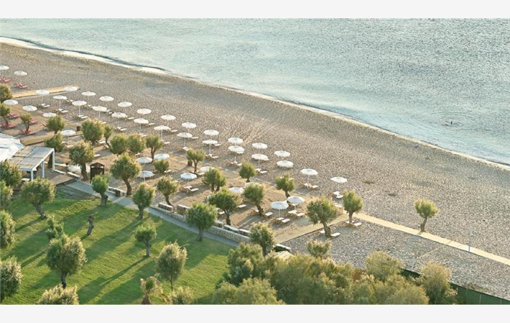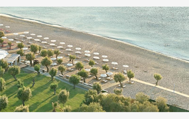 Plaža je peščano šljunkovita, nagrađena plavom zastavicom.Ležaljke, suncobrani i peškiri su besplatni za goste hotela.