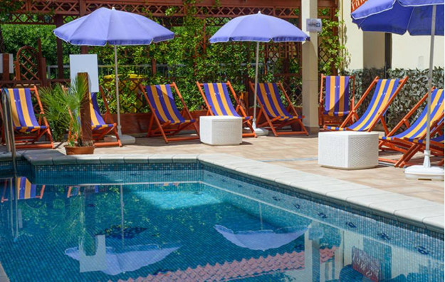 Sadržaj hotela:recepcija, lift, salu za doručak, bar, otvoreni bezen, besplatan Wi-Fi. Parking je uz doplatu na licu mesta od 7 eur dnevno, prema raspoloživosti (udaljen je oko 900 metara od hotela; hotel obezbedjuje kombi prevoz do parkinga). Dozvoljen je boravak manjih kućnih ljubimaca (po hotelskim pravilima), uz doplatu od 5 eur po danu.
