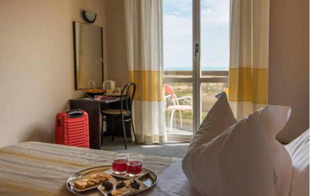 Sobe: Sve sobe imaju balkon sa delimičnim pogledom na more, kupatilo sa kadom ili tuš-kabinom, fen, klimu, TV, frižider, telefon, sef, Wi-Fi .