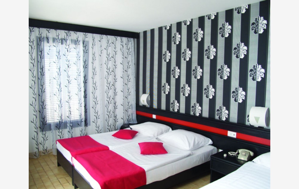 Smeštaj: 209 jedinica – 569 ležaja u sobama i apartmanima. Standard (nerenovirane) i superior (renovirane) sobe. Svaka soba/apartman ima kupatilo, TV, klimu i balkon.