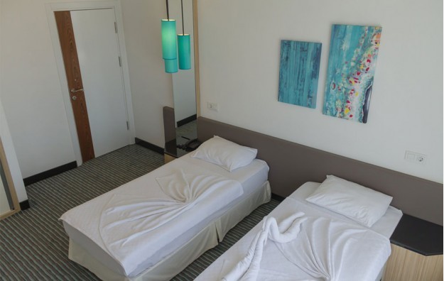 Sobe: standardne sobe dvokrevetne za maksimalno četiri osobe, opremljene sa dva standardna ležaja ili francuskim ležajem i jednim ili dva pomoćna ležaja od kojih jedan može biti i sofa na razvlačenje. Sobe poseduju kupatilo (Tuš WC i fen za sušenje kose), klima uređaj, telefon, TV, mini bar.